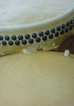 最近は、わりと新しい桶胴太鼓をセットして、皮をなじませています。